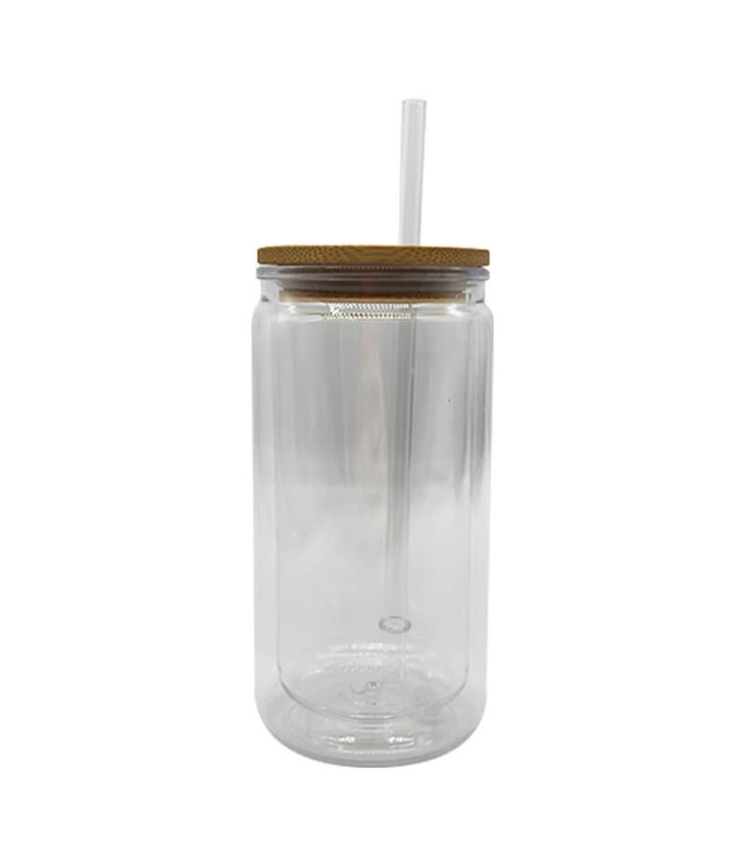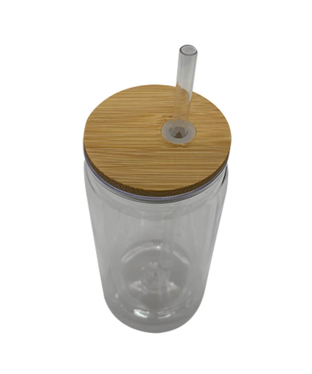 Clear Double wall plastic mug with bamboo lid